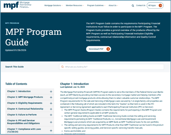 Our MPF Guides have moved from static PDFs to fully searchable webpages, offering an improved browsing experience with intuitive navigation, a streamlined table of contents, and easier access to chapter- and section-level information. Downloadable PDFs will remain available for your reference.
